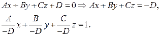 Уравнение плоскости «в отрезках»