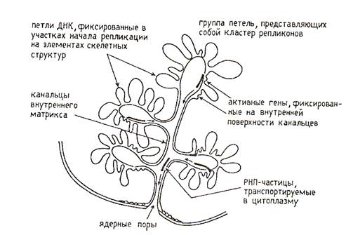 Рисунок 1.2 - Модель организации интерфазной хромосомы, основанная на представлении об организации ядерного матрикса как системы канальцев (цит. по Корочкин Л.И. 2002)
