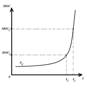 Рис.35 График функционирования рынка капитала Рис.33 График предложения капитала Закон убывающей капиталоотдачи Рис.32 График спроса на капитал Спрос на капитал (Dc) – это обратная зависимость между предельным продуктом капитала (MPc) и инвестициями (I). Величина спроса на капитал изменяется в зависимости от предельного продукта капитала. (Dc изменяют неценовые факторы). Чем больше объем инвестиций, тем меньше отдача капитала. ЗУКО-это частный случай ЗУД (Закона убывающей доходности). ЗУКО действует только тогда, когда капитал-переменная величина. 30.4 Предложение капитала (рис.33) Предложение капитала (Sc)- это прямая зависимость между предельными издержками упущенных возможностей домохозяйств и величиной инвестиций. Предельные издержки упущенных возможностей домохозяйств (МОС) связаны с дополнительным объемом денежных средств, отдаваемых в ссуду. Величина предложения капитала зависит от стоимостных факторов. 30.5 Цена капитала. Цена капитала - это ставка процента, которая формирует доход на капитал (рис.34). Домохозяйства предлагают денежные средства в ссуду и рассчитывают на получение дохода в виде ставки процента, т.к. в этой сфере действует принцип временного предпочтения (текущее потребление в экономике оценивается выше, чем будущее). Домохозяйства отказываются от определенной части текущего потребления, когда они размещают свои денежные средства на банковских счетах с учетом получения дохода. В банковской системе денежные средства должны быть оценены.
