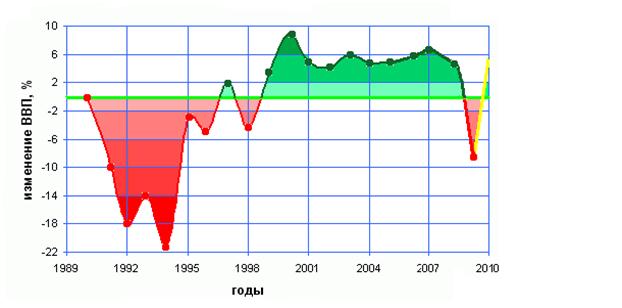 График годового изменения реального ВВП России 1991–2010