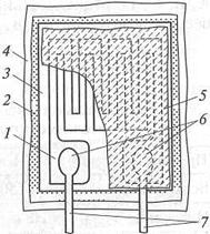 У ресторанному господарстві і торгівлі широкого використання набувають електронні ваги. Сучасні електронні ваги складаються з таких основних елементів: вантажоприймального пристрою, електронного перетворювача, процесорного блока, індикатора (дисплея), клавіатури, принтера. На сьогодні в конструкції електронних ваг застосовують такі типи перетворювачів: тензометричні, віброчастотні і п’єзокварцові. Дія тензометричного перетворювача заснована на перетворенні деформації пружних елементів, в результаті чого змінюється їх електричний опір. Пружними елементами є металеві вироби спеціальної конструкції – пластини, кільця та ін. Перетворювач – це високочутлива спіраль зі спеціального сплаву, наприклад, константану, яка особливим способом приклеюється до пружного елемента на ділянці, де деформація виражена найбільше. Перетворення вимірюваної сили тяжіння (ваги тіла) в показання зміни електричного опору відбувається в чутливому елементі тензорезистора внаслідок наявності тензорезистивного ефекту в провідникових та напівпровідникових матеріалах, тобто внаслідок їх властивості змінювати свій електричний опір при деформуванні. При деформації електричний опір тіла змінюється як за рахунок зміни його геометричних розмірів, так і за рахунок зміни питомого опору матеріалу. У сучасному вигляді тензорезистор конструктивно представлє собою чутливий елемент 1 з тензочутливого матеріалу (дроту, фольги тощо), закріплений за допомогою сполучного матеріалу (клею, цементу) 2 на силовому елементі датчика 4 (рис. 4). Для приєднання чутливого елемента в електричний ланцюг у тензорезисторі є вивідні провідники 7. Деякі конструкції тензорезисторів для зручності встановлення мають підкладку 3, розташовану між чутливим і пружним елементами датчика, а також захисний елемент 5, розміщений на поверхні чутливого елемента.