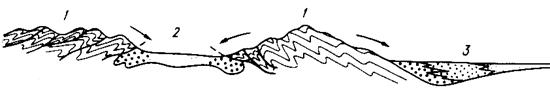 Рис. 16.8. Схема строения горно-складчатого сооружения на орогенном этапе