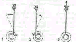 Рис. 16. Колебания наружного (свободного) конца иглы при различных положениях её по отношению к артерии (по М.Ратшову): 1 - игла справа от артерии; 2 - игла слева от артерии; 3 - игла точно над артерией. 44.