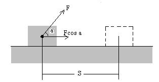 W = (F cos α)s (1) If an applied force F acts along the direction of the dispolacement, then α=0, and cos 0 = 1. In this case, Equation1 gives
