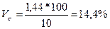 V < 10% - незначне коливання V = від 10% до 30% - середнє коливання V > 30% - велике коливання Вважають, що сукупність є однорідною, а середня — типовою, коли коефіцієнт не перевищує 33%. Обчислюємо відносні показники варіації у наведеному прикладі: