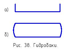 Гидравлические баки служат для хранения жидкости необходимой для питания гидропривода. Гидробаки бывают с атмосферным давлением над свободной поверхностью и с избыточным давлением. На рис.38 приведены условные обозначения баков (а - с атмосферным давлением в баке; б - с избыточным давлением в баке).