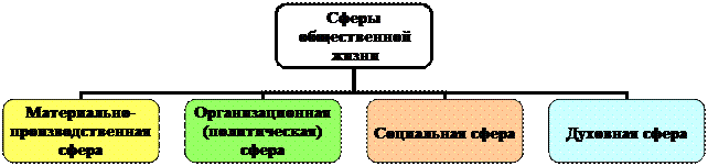 Все сферы тесно взаимосвязаны, рассматривать их по отдельности можно только в теории, что помогает вычленять и изучать отдельные области реально целостного общества, их роль в общей системе. Вступая в отношения друг с другом, люди образуют разнообразные социальные группы. Совокупность этих групп образует социальную структуру общества. Группы выделяются по разным признакам, например: 1. социально-классовыми группами являются сословия (например, дворянство, духовенство, третье сословие), классы (рабочий класс, класс буржуазии), слои (высококвалифицированные рабочие и чернорабочие) и др.; 2. социально-этническими группами являются род, племя, народность, нация; 3. демографические группы – половозрастные группы, трудоспособное и нетрудоспособное население и др.; 4. профессионально-образовательные группы – работники умственного и физического труда, профессиональные группы. Существуют различные подходы к исследованию общества, среди основных – идеалистический, материалистический, натуралистический. Представители идеалистического подхода общественную жизнь объясняют воздействием духовных по своей природе факторов. Причиной происходящих в обществе событий они считают идеи, рождающиеся в головах людей. Причём, часть философов-идеалистов считает, что люди не сами додумываются до каких-то важных идей, а эти идеи внушены им Богом, Мировым Разумом или тому подобной сверхъестественной силой. Представители противоположного, материалистического подхода считают, что в обществе действуют такие же объективные законы, как и в природе. Эти законы не зависят от воли и желания людей и каких бы то ни было сверхъестественных сил. Развитие общества представляет собой не сверхъестественный, а естественноисторический процесс, который можно так же изучать, как и законы природы. Деятельность людей по преобразованию общественной жизни будет успешной, если она будет опираться на познанные объективные социальные закономерности. Философы-материалисты подчёркивают значение материальных факторов общественной жизни. По их мнению, основой общественной жизни является материальное производство, и именно там нужно искать причины происходящих в обществе событий. Разновидностью материалистического подхода к объяснению общественной жизни является натуралистический подход. Его представитель Лев Николаевич Гумилёв (1913-1993) закономерности развития общества объясняет природными факторами, и в первую очередь, влиянием космоса. Историю человечества он представляет как историю сосуществующих и сменяющих друг друга этносов – конкретных народов с их специфическими культурами. Этносы существуют так же, как и все биологические организмы: имеют среднюю продолжительность жизни (1 500 лет), проходят определенные стадии развития. Зарождение этноса происходит вследствие прихода из космоса в определенный участок земного шара потока энергии. В результате в данном регионе появляется значительное количество людей, обладающих повышенным количеством жизненной энергии, тягой к активной деятельности и пониженным инстинктом самосохранения. Таких людей Гумилев называет пассионариями (от лат. passion – страсть). Пассионарии совершают исторические деяния – основывают государства, империи, выигрывают битвы, совершают открытия и т.п. Поскольку пассионарии легко о