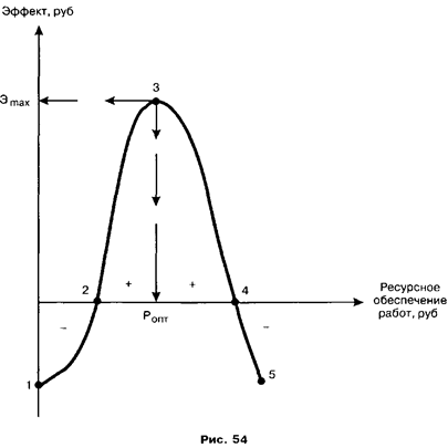 • кривая 1 показывает, что организация развивается по экстенсивному пути (прирост эффекта меньше, чем наращивание ресурсного обеспечения работ); • кривая 3 показывает, что организация развивается по интенсивному пути (прирост эффекта больше, чем наращивание ресурсного обеспечения работ); • прямая 2 — пограничная ситуация (равномерные приросты эффекта и ресурсов). Все кривые, расположенные под второй прямой, определяют варианты экстенсивного развития организации. Все кривые, расположенные над второй прямой, определяют варианты интенсивного развития организации. Менеджеры высшего звена должны постоянно отслеживать динамику этих приращений и в случае получения отрицательных результатов оперативно предпринимать комплекс экономико-организационных и научно-технических мероприятий по выводу организации из области экстенсивного в область интенсивного развития.