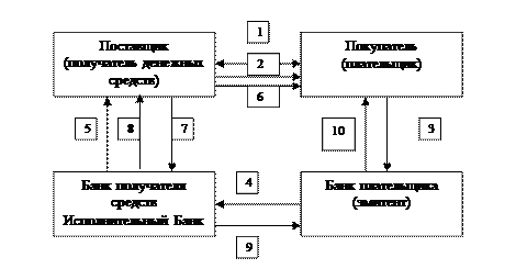 Схема документооборота при расчетах чеками с предварительным депонированием средств Расчеты чеками Схема документооборота с непокрытым видом аккредитива Непокрытый (гарантированный) аккредитив - это аккредитив, по которому платежи поставщику гарантирует банк. В этом случае плательщик обращается в банк с ходатайством выставить для него гарантированный аккредитив. Указаное ходатайство банк-эмитент удовлетворяет в отношении платежеспособных, первоклассных клиентов и при установлении между ним и исполняющим банком прямых кор отношений. При открытии гарантированного аккредитива банк-эмитент предоставляет исполняющему банку право списывать платежи по аккредитиву в пользу поставщика – получателя средств со своего кор счета в этом банке. (счет ЛОРО).