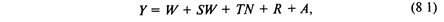 где W — оплата труда наемных работников; SW — начисления на заработную плату (в Пенсионный фонд, Фонд социального страхования, Фонд обязательного медицинского страхования, Фонд занятости); TN — другие чистые налоги на производство и продукты; R — чистая прибыль и валовые смешанные доходы; А — потребление основного капитала. Как правило, для прогноза оплаты труда имеются исходные данные об объеме и динамике ВВП по отраслям рыночного сектора и отраслям, оказывающим нерыночные услуги — финансируемым в основном из госбюджета и государственных внебюджетных фондов. В нерыночном секторе фонд оплаты труда зависит от ресурсов государственного бюджета и определяется обычно как доля ко всем расходам. Поэтому в прогнозных расчетах его можно определить как долю к добавленной стоимости соответствующего сектора: