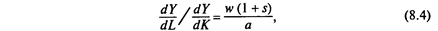 где W 2 ,Y 2, L 2 — соответственно фонд оплаты труда, добавленная стоимость, занятость в рыночном секторе; Р — индекс цен. Эконометрическое уравнение (8.3) при использовании его для прогноза показывает тенденции динамики оплаты труда в отчетный период. Для анализа объективных границ возможного изменения заработной платы может быть применен и аппарат производственной функции. Как известно, объем выпуска продукции определяется объемами и эффективностью производственных ресурсов — основных фондов и рабочей силы. Один и тот же объем выпуска продукции может достигаться при различных комбинациях этих ресурсов. Это проявляется в известной зависимости уровня производительности труда от его фондовооруженности. Количественные параметры этой зависимости являются обобщенной экономической характеристикой технологий, применяемых в отрасли, комплексах отраслей, экономике в целом. Для характеристики такой взаимосвязи используется понятие производственной функции (см. гл. 3). С объемами применяемых ресурсов связаны уровень и структура текущих издержек производства. Высокий уровень фондовооруженности при данном объеме выпуска означает большую величину амортизации и затрат на текущий ремонт основных фондов. При меньшей фондовооруженности в расчете на тот же объем выпуска требуется большая величина заработной платы с начислениями. В результате одному и тому же объему выпуска всегда соответствует множество комбинаций величин основных фондов и рабочей силы и при заданном уровне средней заработной платы и норм амортизации — множество значений текущих издержек производства. Следует полагать, что в рыночной экономике существует тенденция к минимизации издержек на заданный объем выпуска. Можно показать, что при заданных объемах выпуска продукции, основных фондов и рабочей силы существует единственное соотношение уровня средней заработной платы с начислениями и нормы амортизации основных фондов, соответствующее минимуму текущих издержек производства. Любой сдвиг в фондовооруженности будет в этом случае приводить к их росту. Другими словами, существует некоторая «оптимальная» структура издержек Формально эта структура может быть определена следующим соотношением.