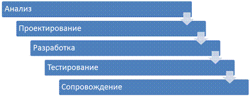 Этап проектирования. Входной информацией для проектирования являются спецификации, написанные по требованиям пользователя. Основываясь на целях проекта, требованиях к поведению, планируемой документации, спецификациях очень высокого уровня, различных выходных формах для пользователя, проектировщик осуществляет исследование структуры системы и логических взаимосвязей ее элементов. Этап проектирования дает ответ на вопрос: «Как (каким образом) система будет удовлетворять предъявленным к ней требованиям?». На этапе реализации (конструирования) выполняется разработка текстов программ. Этап тестирования и отладки предусматривает, в том числе: · Объединение подсистем; · Сопряжение с реальной аппаратурой; · Альфа тест (лабоpатоpные испытания); · Бэта тестиpование (опытная эксплyатация); · Пpиемочный тест. Существует множество моделей процессов ЖЦ систем и программных средств, но три из них в международных стандартах и в ГОСТ Р ИСО/МЭК ТО 152712002 «Процессы жизненного цикла программных средств» (дата введения в действие 01.07.2003) квалифицируются как фундаментальные: каскадная, итеративная инкрементная и эволюционная. Каждая из указанных моделей может быть использована самостоятельно или скомбинирована с другими для создания гибридной модели жизненного цикла конкретного проекта. При этом конкретную модель жизненного цикла системы или ПС следует выбирать так, чтобы процессы и задачи были связаны между собой, и определены их взаимосвязи с предшествующими процессами, видами деятельности и задачами. Каскадная модель ЖЦ наиболее известна и применяется достаточно широко. Модель реализует принцип однократного выполнения каждого из базовых процессов и этапов в их естественных границах. На рис. 1 представлен пример этапов каскадной модели ЖЦ ПС Связь между этапами показана только сверху вниз, тогда как в реальных процессах жизненного цикла следует учитывать возможность возврата на предшествующие этапы, снизу вверх для их уточнения и корректировки результатов.
