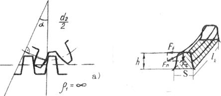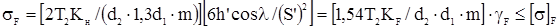 На зуб действует окружная сила Ft, вызывающая напряжения изгиба, и радиальная сила Fr, вызывающая напряжения сжатия (Рисунок 82. б). Опасное сечение зуба представляет собой прямоугольник S х lк. Напряжение у основания зуба