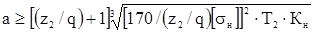 - формула для проверочного расчета червячных передач на выносливость по контактным напряжениям, из которой получаем формулу для проектного расчета