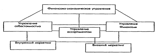 Рис.1. Финансово-экономическое управление предприятием Оно основано на трех китах: управление ассортиментом, себестоимостью и финансами. Все эти функции управления предприятием тесно связаны между собой благодаря постоянному обмену информацией, что позволяет видеть реальное положение дел в целом по предприятию. Представьте себе, что ассортимент продукции составляется только исходя из эффективности каждой из разновидностей. В условиях постоянного недостатка средств это может привести к уменьшению ассортимента, к потере определенного круга потребителей и, как следствие, к еще большему сокращению оборотов. То есть учет одного из факторов не дает объективной картины в целом. Очевидно, что перечисленные функции управления не могут обходиться без структурированной информации. А добыча и обработка информации - это обязанность службы маркетинга на предприятии. Причем она не ограничивается только традиционным, так называемым внешним маркетингом, цель которого - сбор информации о ценах, конкурентах и многое другое. Не меньшее значение имеет и внутренний маркетинг, который занимается изучением собственного предприятия. Именно так можно получить полную и объективную информацию о финансово-экономическом состоянии предприятия в каждый отрезок времени.