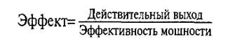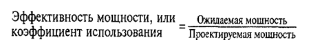 Эффективность мощности, или коэффициент использования, представляет тот максимум мощности, который фирма может достичь при данном наборе товаров, методов планирования и стандартов качества. Другой показатель — эффект. В зависимости от того, как оборудование используется и управляется, может быть трудно или невозможно достичь 100%-ного эффекта. Обычно эффект определяет по отношению к проценту эффективность мощности. Эффект — это мера действительного выхода к эффективности мощности: