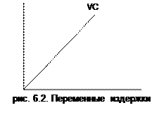 Переменные издержки представляют собой издержки, которые изменяются в ответ на изменение объема выпуска продукции. Переменные издержки зависят от объема выпуска. Они включают затраты на топливо, сырье, материалы, транспортные расходы, заработную плату рабочим. Условным обозначением переменных издержек выступает сочетание букв VC. Зависимость изменения переменных издержек в ответ на изменение объема выпуска в графической форме показана на рис. 6.2.