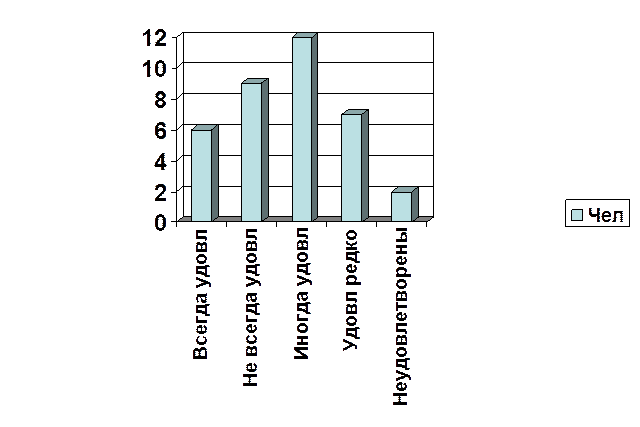 Гистограмма показывает разброс удовлетворенности. ВЫВОД – перестраивать педагогическую деятельность, т.к. идет преобладание неудовольствия.