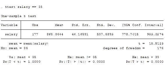 One sample mean – comparison test 2. Используя команду ttest Var1=