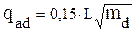 Расчет ведут, начиная с начального участка сети. Определяющим при расчете является рас-ход сточных вод. На начальных участках трубопровода, где мал расход, приходится принимать минимальный диаметр 200мм. для этого диаметра минимальный уклон 0,007. Поэтому, если уклон поверхности земли на первом участке меньше 0,007, то уклон трубопровода принимается 0,007, если уклон поверхности земли на первом участке меньше 0,007, то уклон трубопровода принимается равным уклону поверхности земли. По расходу и принятому уклону трубопровода определяют, пользуясь таблицами гидравлического расчета или номограммами, скорость и наполнение h/d. Затем вычисляют абсолютное значение наполнения и падение трубопровода i. l. По формуле, приведенной выше, вычисляют начальную глубину заложения трубопровода и проставляют её в графу 16. Отметку лотка в начале участка вычисляют как разность отметки поверхности земли и начальной глубины заложения (графа 14). Отметку лотка в конце участка определяют вычитанием из отметки лотка в начале участка падения. Отметки воды в начале и конце участка получают прибавлением абсолютного наполнения к соответствующим отметкам лотка. После этого переходят к расчету следующего участка. При расчете следующего участка уклон трубопровода выбирают таким, чтобы глубина заложения трубопровода была минимальной, но в то же время соблюдались требования к минимальному уклону для диаметра 200мм и для диаметра больше 200мм требования к минимальной самоочищающей скорости. После определения диаметра, уклона, скорости и наполнения решают вопрос о способе соединения труб на стыке расчетных участков. Если соединение труб выполняется “шелыга в шелыгу”, то отметку лотка в начале участка вычисляют из отметки лотка предыдущего участка вычитанием разности диаметров предыдущего и рассчитываемого участков. Если соединение выполняется по уровню воды, то отметка лотка воды в конце предыдущего участка переносится в графу отметки воды в начале рассчитываемого участка, и если соединение - по лоткам, то переносится соответствующая отметка лотка. Затем заполняются все остальные графы в соответствии с вышеприведенной методикой для первого участка. Участки проверяют на дополнительный расход. Дополнительный расход за счет поверхност-ных и грунтовых вод в периоды дождей и снеготаяния, неорганизованно поступающих в водоотводящую сеть через неплотности люков колодцев и за счет инфильтрации грунтовых вод, определяется по формуле: