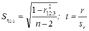 Цифры перед точкой указывают, между какими признаками изучается зависимость, а цифра после точки - влияние какого признака исключается (элиминируется). Ошибку и критерий значимости частной корреляции определяют по тем же формулам, что и парной корреляции: