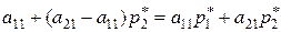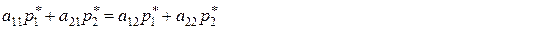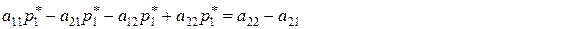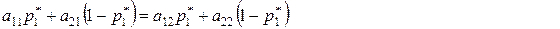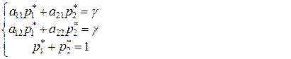 Поскольку обе стратегии игрока 2 являются активными (в противном случае игрок 2 пользовался бы только одной минимаксной чистой стратегией, что соответствует игре с седловой точкой), то на основании свойства оптимальных смешанных стратегий получим уравнения (средний выигрыш остается неизменным и равным цене игры γ независимо от того, какой смесью активных стратегий или какой одной чистой стратегией пользуется другой игрок)