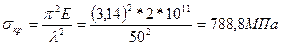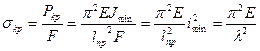 λ – гибкость стержня. Формула Эйлера была получена в предположении, что стержень деформируется в пределах действия закона Гука. Это означает то, что если критическое напряжение выше предела пропорциональности, то формула Эйлера не применима.