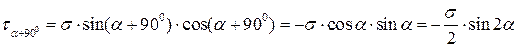 Вычислим значение касательного напряжения на площадке, расположенной под углом 900 к наклонной площадке.