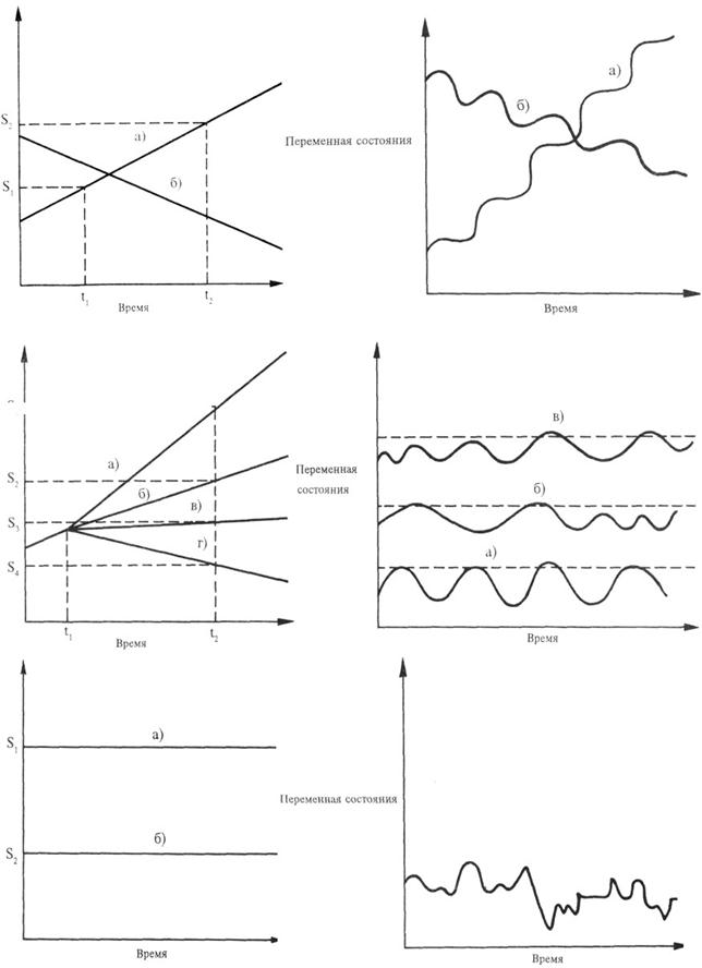 10.2. Разнообразие социальных процессов: типология Рассмотрим типологию социальных процессов, которая базируется на основе следующих критериев. Первый критерий - формы социальных процессов. Процессы бывают направленными и ненаправленными. Примерами направленных процессов могут служить социализация ребенка, экспансия городов, технологическое развитие индустрии, рост населения. В этом широком смысле и индивидуальная биография, и социальная история наиболее направлены. Направленные процессы могут быть постепенными, восходящими, или, линейными (Рис. 10).