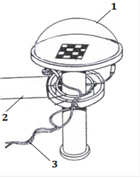а) положение приемной частью вверх, б) положение приемной частью вниз 1- головка пиранометра, 2 — рукоять, 3 — провода для подключения к гальванометру