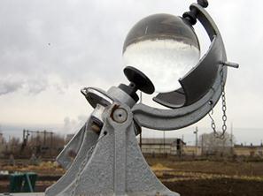 Гелиограф — служит для непрерывной записи продолжительности солнечного сияния. Основной частью гелиографа является стеклянный шар, в фокусе которого установлена дугообразная пластина, имеющая три паза для закладывания специальных лент (верхний паз — для зимы, средний — для осени и весны, и нижний — для лета). Гелиограф устанавливают на открытой площадке, доступной солнечным лучам в течение всего дня, на высоте 2 м или на крыше здания метеостанции. Солнечные лучи пройдя сквозь стеклянный шар, фокусируются и оставляют прожег на ленте. По длине прожега на ленте определяют продолжительность солнечного сияния.