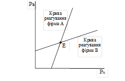 11.2. Теорія ігор і поведінка олігополії За допомогою математичних методів теорія ігор досліджує поведінку фірм у ситуаціях, що вимагають ухвалення стратегічних рішень. Відповідно до цієї теорії під грою розуміють такі взаємовідносини суб’єктів господарювання, коли важливі рішення слід ухвалювати за наперед визначеними правилами. Теорія ігор визначає засадничі положення аналізу стратегічної взаємодії в умовах недостатньої інформації щодо результатів цих рішень. Рівновага, досягнута в даній ситуації, отримала назву рівноваги за Нешем. Рівновага за Нешем – це рівноважне вирішення гри, за якого стратегія кожного гравця є оптимальною за умови вибору стратегії іншим гравцем. В умовах рівноваги за Нешем кожна фірма повністю реалізує свій потенціал залежно від того, що чинять її конкуренти. Це означає, що у жодного з гравців нема стимулу змінити свою стратегію після встановлення того, яку стратегію вибрав інший гравець. Рівновага за Нешем виключає можливість узгодження фірмами своїх дій – кожна з них ухвалює таке рішення, яке дає їй найвищий прибуток із можливих, причому фірма знає про дії своїх конкурентів. Проте у такому випадку прибуток нижчий, ніж за наявності таємної змови. Перед фірмами постає дилема: чи варто їм вдатися до агресивної конкуренції, захоплюючи більшу частку ринку за рахунок витіснення своїх конкурентів, чи співпрацювати з ними, узгоджуючи свою політику і утримуючи свою частку ринку. У випадку пасивної конкуренції фірми призначають високі ціни та обмежують обсяги виробництва, отримуючи вищі прибутки, ніж за агресивної поведінки. Теорія Курно оцінює інший випадок рівноваги за Нешем. А.Курно зробив першу спробу створити теорію олігополії ще в 1838 році. Він поставив проблему олігопольного взаємозв’язку, тобто необхідності кожній фірмі брати до уваги поведінку конкурентів при визначенні своєї ринкової стратегії. На думку Курно, для розуміння поведінки конкуруючих фірм треба зробити припущення щодо реакції кожної фірми на поведінку конкурентів. Початково при постановці проблеми Курно припускав, що кожна фірма буде діяти так, ніби вона не очікує від своїх конкурентів зміни цін чи обсягів випуску, навіть якщо вона сама це зробить. Модель Курно також розглядає випадок дуополії. Кожна з фірм встановлює деяку ціну, яка максимізує прибуток за будь-якої ціни, встановленої конкурентом. Такі ціни зображаються у вигляді кривих реагування.
