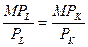 Іншими словами, мінімізація витрат передбачає пропорційне співвідношення граничних продуктів і цін усіх використовуваних ресурсів. Фірмі, яка поєднує ресурси, порушуючи правило найнижчих витрат, властива Х-неефективність. 2. Правило максимізації прибутку. Якщо фірма залучає ресурси на конкурентних ринках, вона досягає співвідношення ресурсів, що максимізує прибуток, тоді, коли кожен використовуваний вхідний фактор залучається до тієї точки, в якій його ціна дорівнює його граничному продуктові у грошовому виразі: РL = MRPL, РC = MRPC. Поділивши обидві частини кожного рівняння на відповідні ціни, отримаємо: