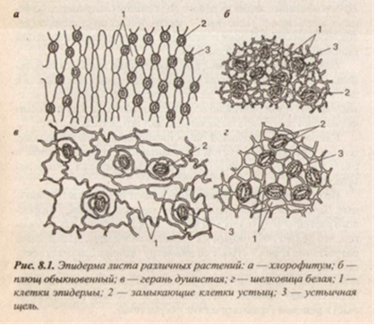 Відповідальний редактор: проф. Янцур М.С. Технічний редактор: Ю.В. Фещук Комп'ютерна верстка: Ю.В. Фещук Здано в набір. Підписано до друку. Формат 60 * 84 1/16. Папір друкарський. Гарнітура Times New Roman. Друк різографічний. Умов. друк. арк. …. Тираж примірників Ціна договірна Рівненський державний гуманітарний університет м. Рівне, вул.. Остафова, 31 Тканью называется группа клеток, структурно и функционально взаимосвязанных друг с другом, сходных по происхождению, строению и выполняющих определенные функции в организме. Ткани возникли у высших растений в связи с выходом на сушу и наибольшей специализации достигли у покрытосеменных, у которых их выделяют до 80 видов. Важнейшими тканями растений являются образовательные, покровные, проводящие, механические и основные. Они могут быть простыми и сложными. Простые ткани состоят из одного вида клеток (например, колленхима, меристема), а сложные — из различных по строению клеток, выполняющих кроме основных и дополнительные функции (эпидерма, ксилема, флоэма и др.). Образовательные ткани, или меристемы, являются эмбриональными тканями. Благодаря долго сохраняющейся способности к делению (некоторые клетки делятся в течение всей жизни) меристемы участвуют в образовании всех постоянных тканей и тем самым формируют растение, а также определяют его длительный рост. Клетки образовательной ткани тонкостенные, многогранные, плотно сомкнутые, с густой цитоплазмой, с крупным ядром и очень мелкими вакуолями. Они способны делиться в разных направлениях. По происхождению меристемы бывают первичные и вторичные. Первичная меристема составляет зародыш семени, а у взрослого растения сохраняется на кончике корней и верхушках побегов, что делает возможным их нарастание в длину. Дальнейшее разрастание корня и стебля по диаметру (вторичный рост) обеспечивается вторичными меристемами — камбием и феллогеном. По расположению в теле растения различают верхушечные (апикальные), боковые (латеральные), вставочные (интеркалярные) и раневые (травматические) меристемы. Покровные ткани располагаются на поверхности всех органов растения. Они выполняют главным образом защитную функцию — защищают растения от механических повреждений, проникновения микроорганизмов, резких колебаний температуры, излишнего испарения и т. п. В зависимости от происхождения различают три группы покровных тканей — эпидермис, перидерму и корку. Эпидермис (эпидерма, кожица) — первичная покровная ткань, расположенная на поверхности листьев и молодых зеленых побегов (рис. 8.1). Она состоит из одного слоя живых, плотно сомкнутых клеток, не имеющих хлоропластов. Оболочки клеток обычно извилистые, что обусловливает их прочное смыкание. Наружная поверхность клеток этой ткани часто одета кутикулой или восковым налетом, что является дополнительным защитным приспособлением. В эпидерме листьев и зеленых стеблей имеются устьица, которые регулируют транспирацию и газообмен растения. Перидерма — вторичная покровная ткань стеблей и корней, сменяющая эпидермис у многолетних (реже однолетних) растений (рис. 8.2.). Ее образование связано с деятельностью вторичной меристемы — феллогена (пробкового камбия), клетки которого делятся и дифференцируются в центробежном направлении (наружу) в пробку (феллему), а в центростремительном (внутрь) — в слой живых парен