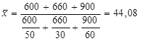 Приклад. Три промислових підприємства виробляють міксери. Собівартість виробництва міксера на 1-му підприємстві – 50 грн., на 2-му – 30 грн., на 3-му – 60 грн. визначити середню собівартість виробництва міксера за умови, що витрати на виробництво на 1-му підприємстві складають 600 грн., на 2-му – 660 грн., на 3-му – 900 грн. Якби кожне з підприємств випускало б по одному міксеру, то можна було б застосувати формулу середньої арифметичної