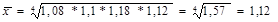 де п – число осереднюваних величин. Приклад. Кількість зареєстрованих злочинів за чотири роки зросла у 1,57 рази, у тому числі за перший рік – у 1,08; за другий – у 1,1; за третій – у 1,18; за четвертий – у 1,12 рази. Середньорічний темп зростання кількості зареєстрованих злочинів становить:
