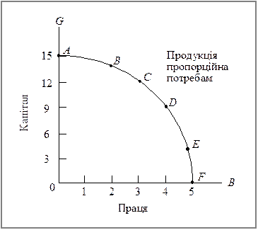 Рис. 5.1. Межа виробничих можливостей
