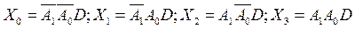 На основі рівнянь (3.13) побудована схема демультиплексора на чотири входи на тривходових елементах І, які наведено на рис. 3.12. Демультиплексори призначені для виконання таких операцій: · комутації, як окремих ліній, так і багаторозрядних шин; · перетворення послідовного коду в паралельний; · реалізації логічних функцій та інших.