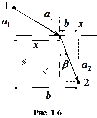 Розглянемо закон заломлення світла. Нехай світло поширюється з точки
