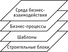 В 2002 году Gartner сформулировала новую концепцию архитектуры предприятия, Модель Gartner включает четырех связанных, взаимозависимых и усложняющихся уровней: · Среда бизнес-взаимодействия; · Бизнес-процессы и стили бизнес-процессов; · Шаблоны; · Технологические строительные блоки (кирпичики).