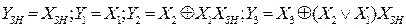 Відповідність між прямим і доповняльним кодами на прикладі чотирьох цифрових розрядів представлено в табл. 3.15. Знаковий розряд прямого коду використовується як управляючий сигнал: якщо X ЗН = 0, то вихідний код повторює значення вхідного; при Х ЗН = 1 реалізується перетворення згідно табл. 3.15. Карту Карно, відповідну табл. 3.15 для отримання мінімальних форм функцій перетворення прямого коду в доповняльний, представлено на рис. 3.21.