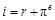 де і — номінальна процентна ставка; r — реальна процентна ставка; Рівняння (5.23) побудовано на таких умовах: 1 (одиниця) — це сума позики, а процентні ставки є коефіцієнтами до суми позики, тобто до одиниці. Очікуваний темп інфляції також є коефіцієнтом. Ліва частина рівняння визначає номінальну кількість грошей, яку має повернути позичальник по закінченні терміну використання позики. Вона складається з основної суми, тобто позики, і процентних платежів за використання позики. Права частина рівняння показує, як номінальна кількість грошей, що підлягає поверненню, залежить від реальної процентної ставки та очікуваного темпу інфляції. Після нескладних перетворень рівняння (5.23) номінальну процентну ставку можна визначити за формулою