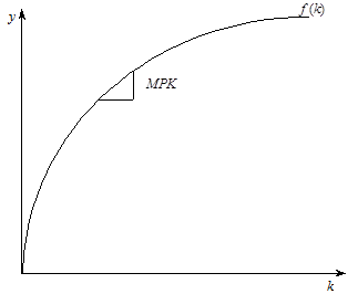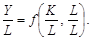У формулі (10.4), Y / L = y, а f (K / L, L / L) = f (k). Звідси виробнича функція в моделі Солоу набирає такого вигляду: