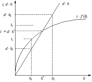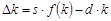 Оскільки згідно з передумовами моделі i = s × f (k), то зміну капіталоозброєності можна визначити так: