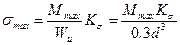 Рисунок 5.13 - Залежність коефіцієнта концентрації напружень осі кронблока від діаметру радіального отвору