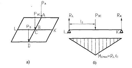 Рисунок 5.14 - Розрахункова схема рами кронблока: а) схема рами; б) схема розрахунку поперечної балки