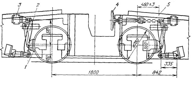 В зависимости от вместимости кузова диаметр колеса принимают 300—450 мм. Обод колеса выполняют конической формы для обеспечения более устойчивого движения вагонетки. Буфера закреплены на раме вагонетки и служат для амортизации ударов при столкновении вагонеток и уменьшения опасности травматизма при выполнении вручную операций по расцепке и сцепке. Буфера бывают жесткие и эластичные с пружинными или резиновыми амортизаторами.