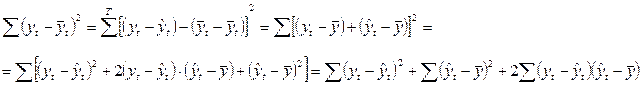 Попробуем разложить дисперсию изменчивости явления на две составляющие – объясненную регрессией и необъясненную.
