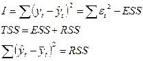 ESS – дисперсия, необъясненная уравнением, та, которая осталась неизвестной в остатке. RSS – та часть дисперсии, которая объяснена регрессионным уравнением. На основании этого вводится