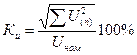 При определении коэффициента искажения синусоидальности кривой напряжения допускается не учитывать гармонические составляющие порядка п > 40 или действующее значение которых менее 0,3 от U (1). Коэффициент n -й гармонической составляющей KU(n), %, является отношением действующего значения напряжения n -й гармоники U(n) к действующему значению напряжения первой гармоники: